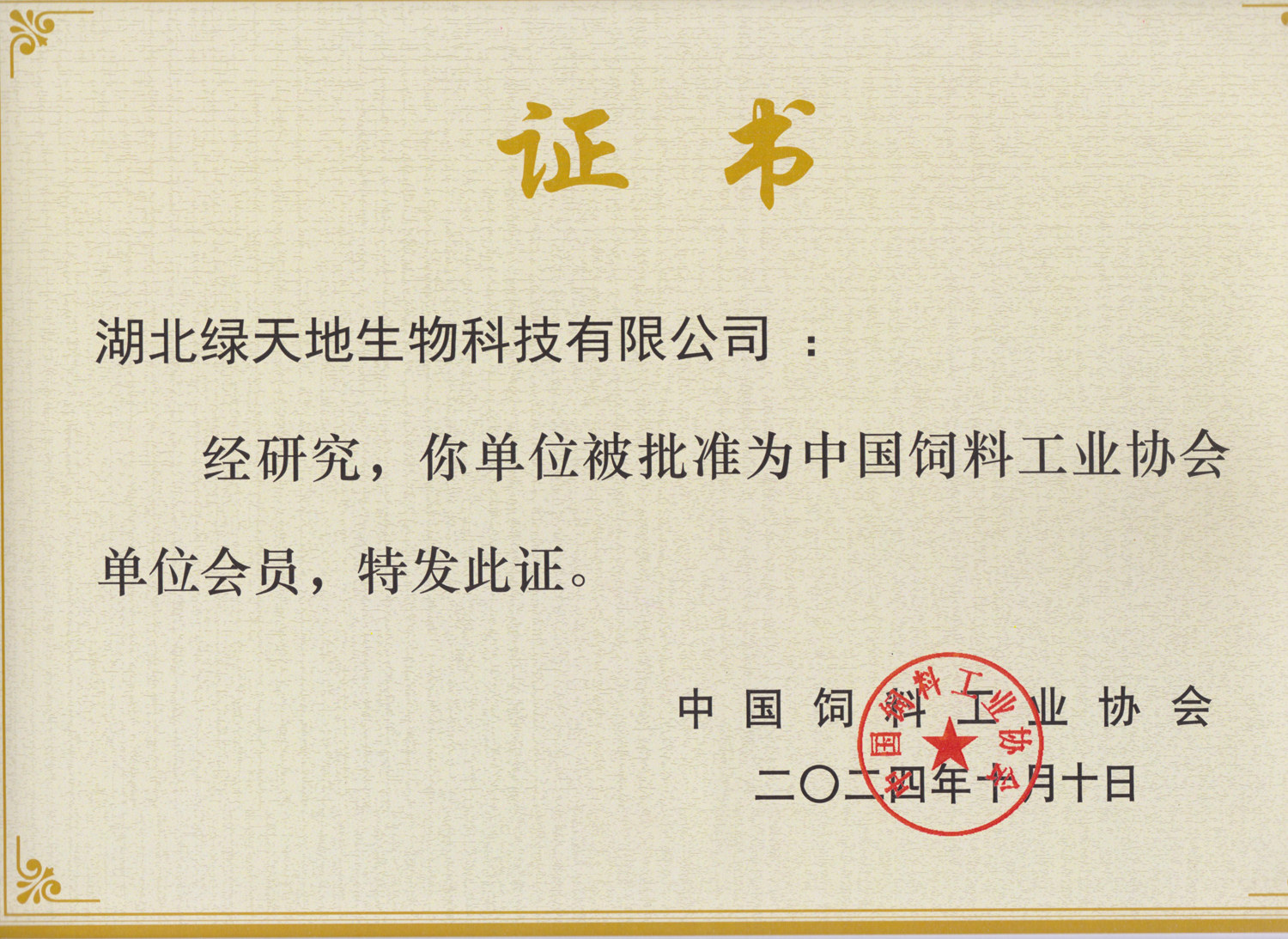 我司成為中國(guó)飼料工業(yè)協(xié)會(huì)會(huì)員單位
